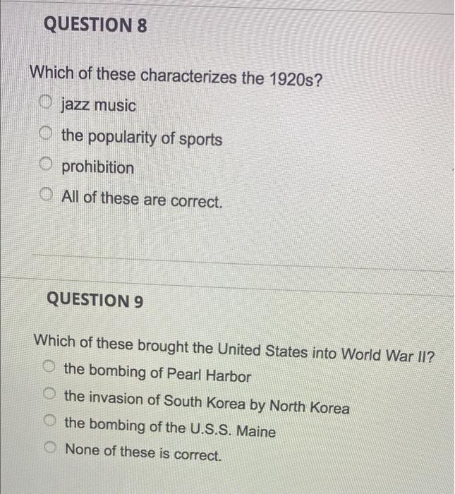 Solved Question 8 Which Of These Characterizes The 1920s Chegg Com